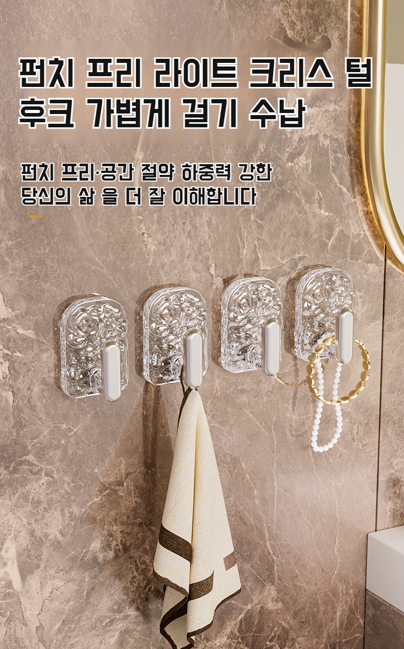 강력 비스코스 주방 화장실 펀치프리 물결 행거 비스코스 내하중 헴 걸이 강력 걸이 물결 행거